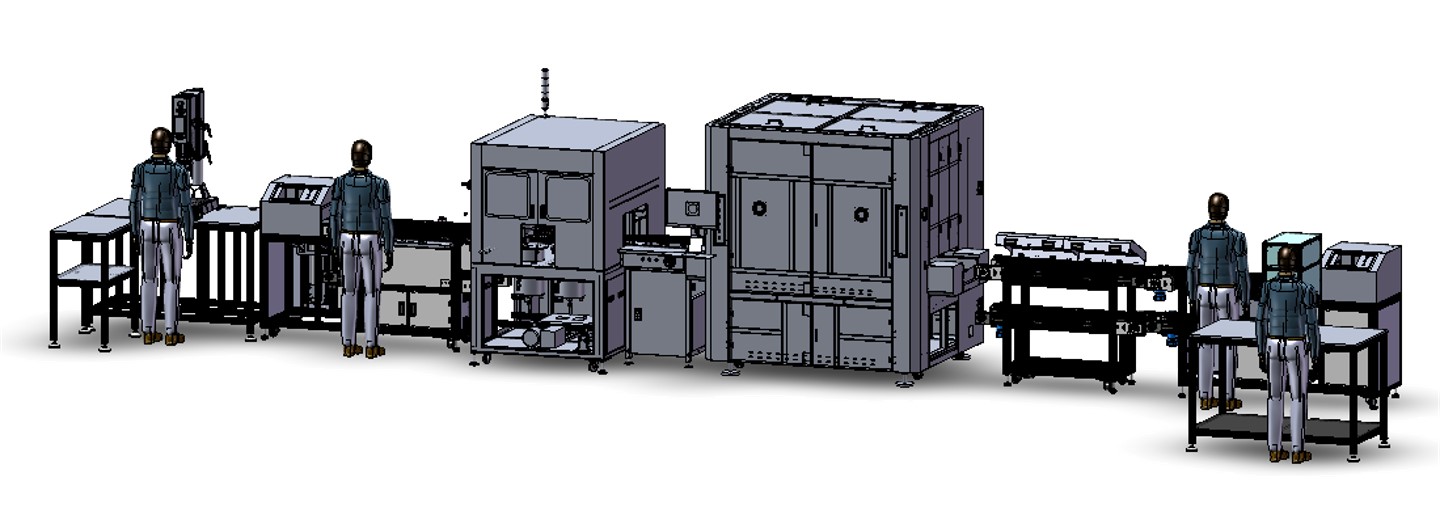光伏優化器自動組裝線包括通過生產輸送帶依次連接的自動裝底殼設備、點導熱膠設備、自動裝PCB板設備、自動裝屏蔽蓋及鎖螺絲設備、自動PCB板鎖螺絲設備、自動焊錫及檢測工位、自動裝上蓋設備、自動下料設備、自動超聲波焊接設備。